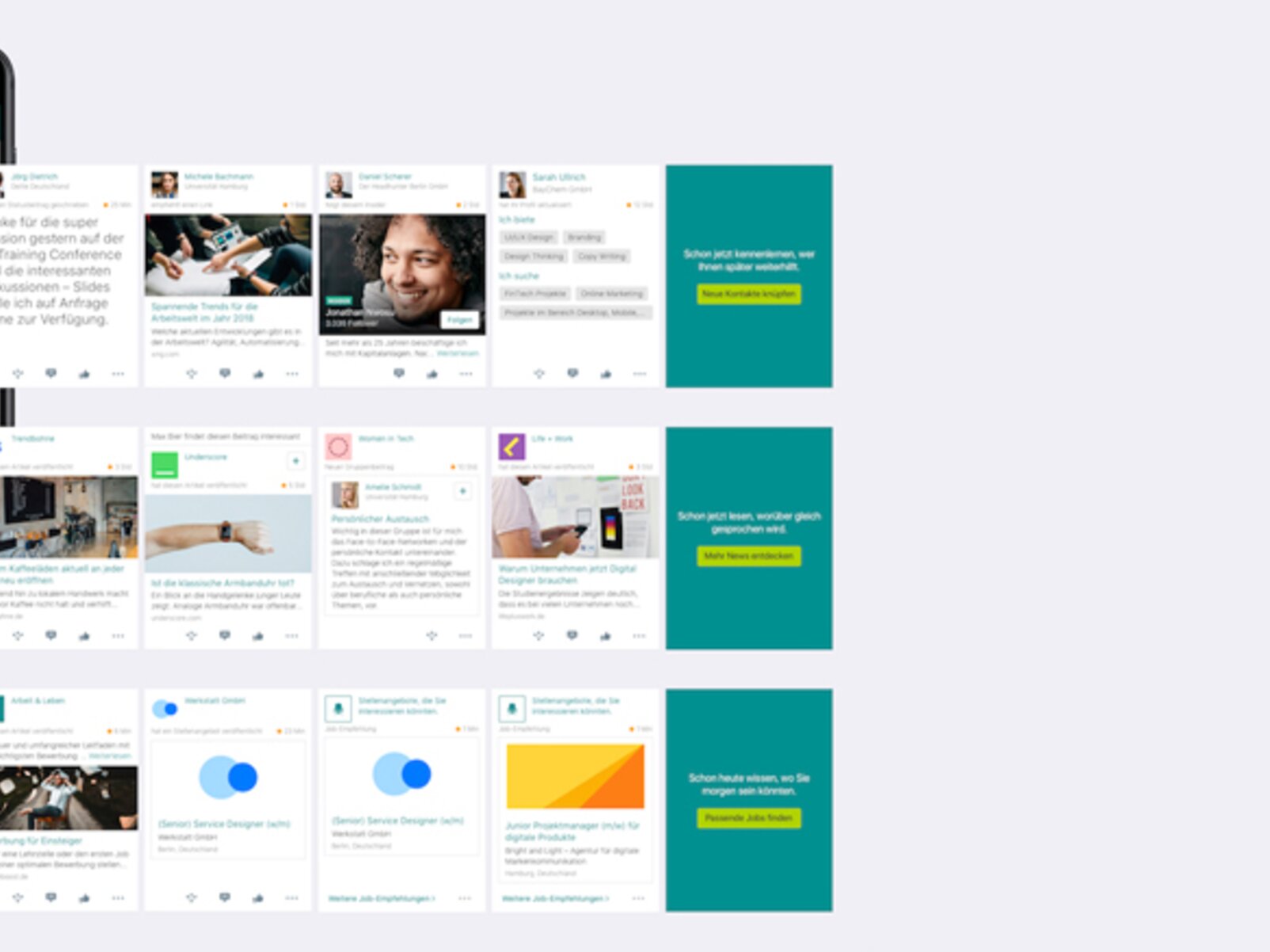Dank einer neuentwickelten Relevanzauswahl erhalten Nutzer zudem Inhalte, die noch besser zur ihren Interessen passen. Der Algorithmus priorisiert pro Rubrik bis zu 15 Beiträge auf Basis des individuellen Nutzungsverhaltes heraus und präsentiert sie in den horizontalen Reihen. Dabei werden zum Beispiel Beiträge oder Absender bevorzugt gezeigt, mit denen die Nutzer stärker interagieren und auch die Aktivität, die ein Beitrag erzeugt, behutsam berücksichtigt. Nähere Informationen zum Algorithmus sind in einem Blogbeitrag verfügbar: https://blog.xing.com/de/2018/03/13/algorithmus-fuer-eine-bessere-uebersicht-auf-der-mobilen-startseite/ In den einzelnen horizontalen Themengebieten werden den XING-Mitgliedern zudem Empfehlungen präsentiert, beispielsweise neue Kontaktvorschläge, News-Quellen oder Stellenangebote, die für die Nutzer von Relevanz sind. Der jeweils letzte Beitrag in einer Reihe lädt die Nutzer dazu ein, ihre Rubriken weiter auf ihre Bedürfnisse hin anzupassen, etwa indem sie weiteren Branchenexperten folgen oder ihre Kriterien für die Jobsuche anpassen.